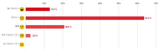 薄毛で悩んでいる友人や家族などにAGAスキンクリニックを勧めたいと思うか、選択肢から1つ選んでもらった。