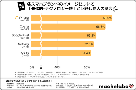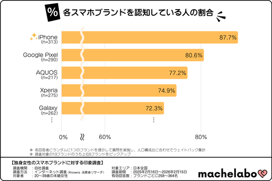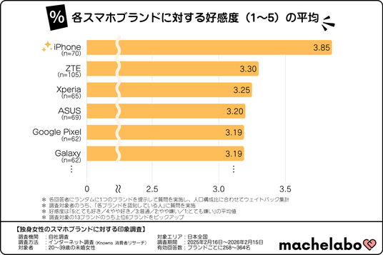 そこで、株式会社マシェバラトークが運営するオウンドメディア『マシェラボ』( https://machetalk.jp/media/ )は、全国の20~39歳の未婚女性を対象に、各スマートフォンブランドに対するイメージ調査を実施しました。