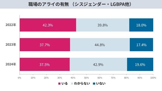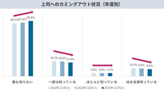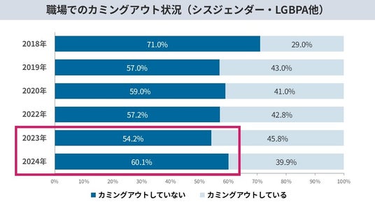 ・カミングアウトする人は“増えていない“ 一部では減少。職場のアライ(支援者)も増加せず。