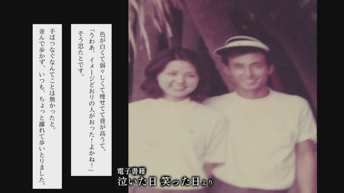 当時の記憶を綴る物語は、2人が出会った10代の頃から始まる。「色が白くて弱々しくて、痩せてて背が高うて。『うわあ、イメージどおりの人がおった!よかね!』そう思うたとです。