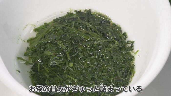 「後味は、なかなか感じられないお茶の甘みが、ぎゅっと詰まっている」と弓削さん。一口含むとお茶の甘さが口いっぱいに広がる。