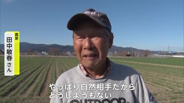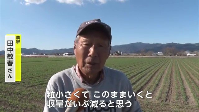 農家の田中敏春さんは「この時期は、もうちょっと伸びて土が見えないくらいに(大麦が)育っていないといけない」と畑の異変を説明する。