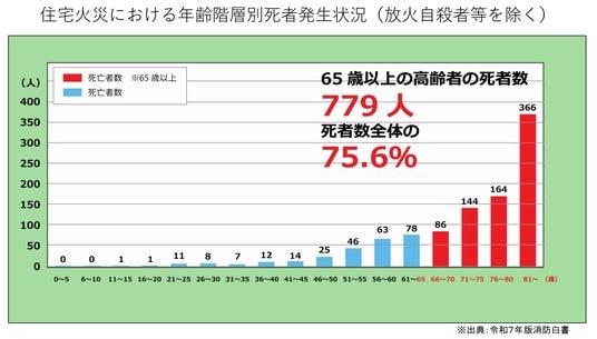 超高齢社会の進行に伴い、住宅火災による被害は高齢者に集中する傾向が強まっています。
