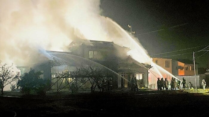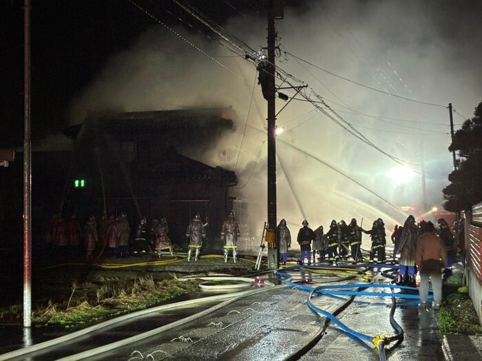 24日夜、富山県上市町の住宅で火事があり、消防が消火活動にあたっています。