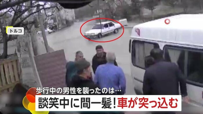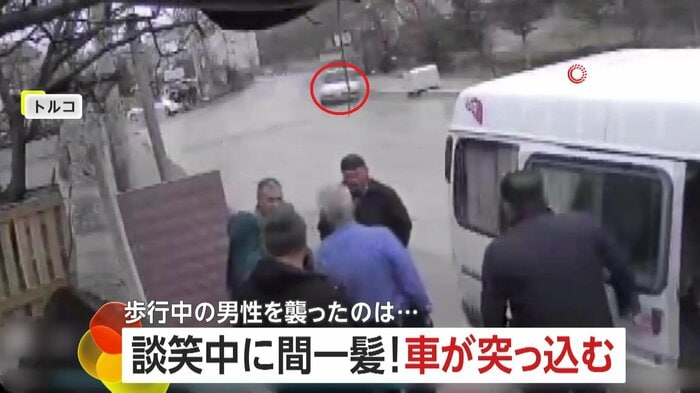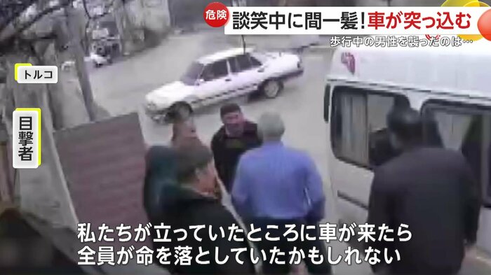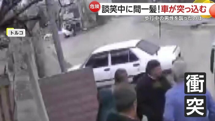 トルコで撮影されたのは、路上で談笑していた6人の方向を目がけて、突っ込んできた1台の車。何が起きていたのか?