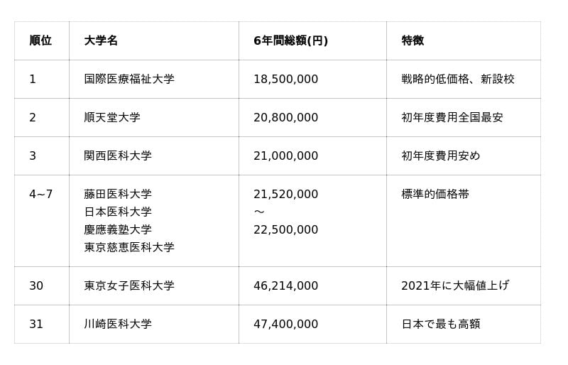 私立医学部は学費が非常に高額で、大学間で二極化が進んでいます。