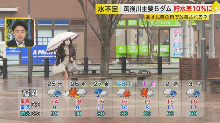2月10日、福岡県は水不足に対応するため渇水対策本部を設置。このまま雨が少ない状況が続けば夜間断水も検討されているまで状況は悪化している。