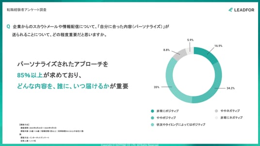 25歳~34歳の転職経験者1,117名調査:タレントプール採用は候補者にも有益、85%以上が"パーソナライズされたアプローチ"を重視