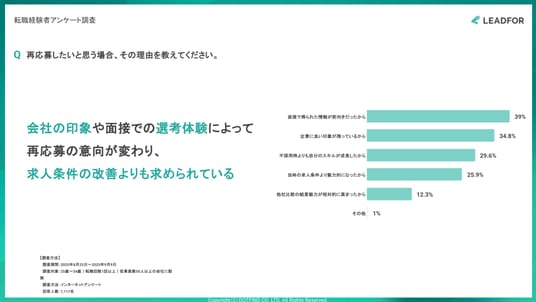 - - 再応募の決め手は「求人条件の改善」ではなく「会社の印象」と「選考体験」