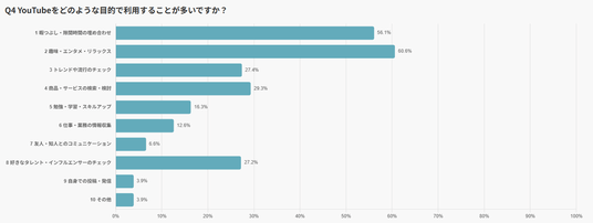 全体を俯瞰すると、現代の日本人のYouTube利用は、娯楽を主軸としながらも、学習や比較検討といった実用的なニーズまで幅広くカバーする万能なメディアとなっている様子が読み取れます。