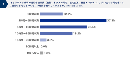 ・ 約半数がネットワークの運用管理業務に「週5時間以上」を費やす