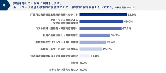 ・ 半数以上が、ネットワーク環境を見直すことで「IT部門の負担を軽減したい」と回答
