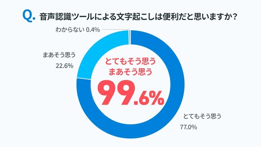 ・音声認識ツールによる文字起こしは、99.6%が「便利」と回答