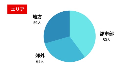 - 利用者の居住エリアは多い順に「都市部」「郊外」「地方」。