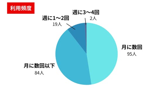 フードデリバリーの利用頻度は、「月に数回」と「月に数回以下」で約9割に上りました。コロナ禍以降、フードデリバリーが人々の生活に浸透したとはいえ、日常生活で当たり前のように使う人は決して多くないことがわかります。