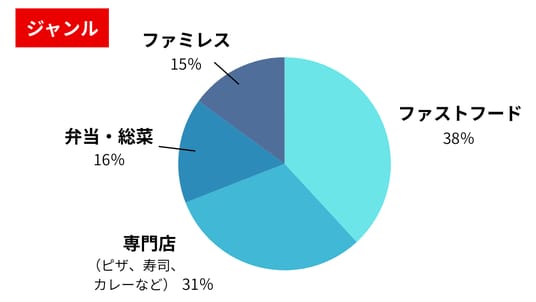 - よく注文するジャンルは「ファストフード」が最多で全体の約4割。