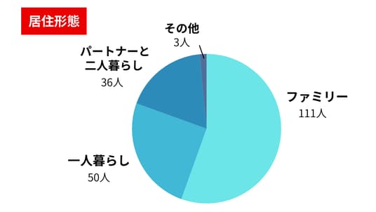 回答者200人のうち、「ファミリー」として居住している人は全体の半数以上となりました。