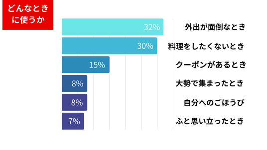 - いつフードデリバリーを使うかの回答で、最多は「外出が面倒なとき」。