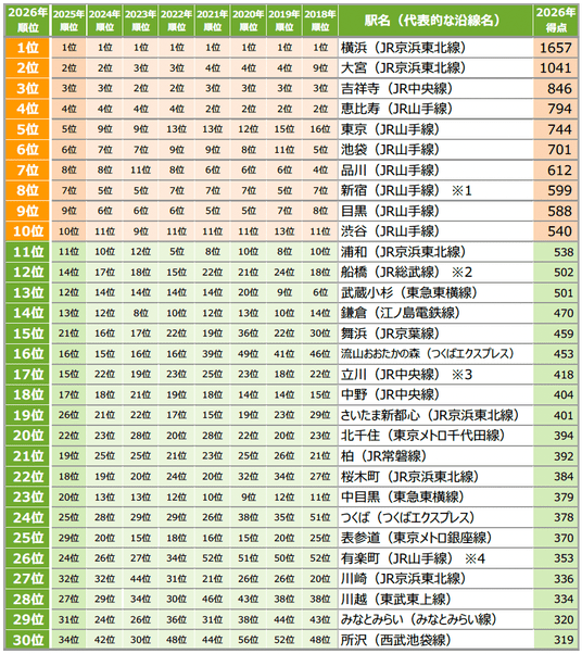 (※は複数の駅の得点を合算しています。詳しくはPDFを参照ください)
