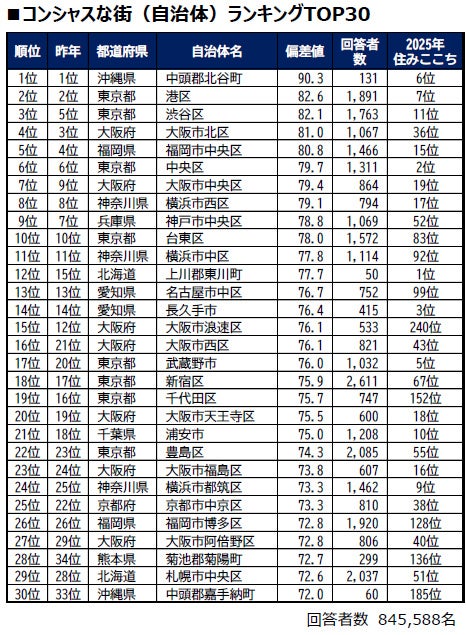 コンシャスな街(自治体)ランキング2025<TOP100>