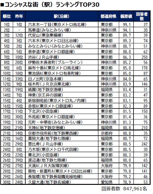 ■コンシャスな街(駅)トップは、3年連続で六本木一丁目