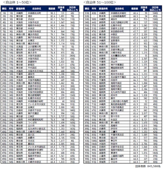 ※表内に記載している「住みここち」は、2025年8月6日に発表している「住みここちランキング<全国版>」の順位を記載しています。詳しい順位はWEBサイトをご参照ください。