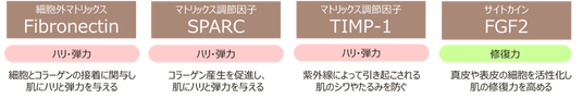 本試験では、その中でも特に肌への関与が示唆されている以下4種類のタンパク質について、保管温度での含有量の変化を確認しました。