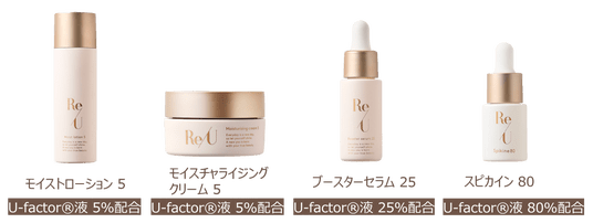 ReU製品にはU-factor(R)液が高濃度で配合されています。各製品の配合率は以下のとおりです。