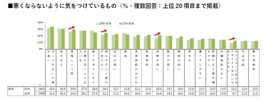 - 「骨粗しょう症」が2024年から3.6ポイント増加し、5位から3位に上昇。