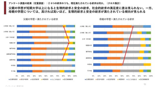 ● 特に母親の学歴の方が、子どもの欲求構造との相関が強い