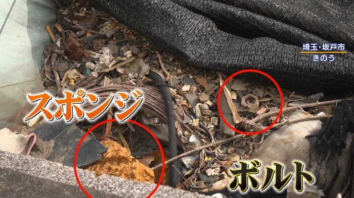 住宅が並ぶ場所に突如現れたのが…黒いシートで覆われたゴミの山。中身は細かく砕かれたプラスチックに、鉄線、ボルトのようなものも。いわゆる産業廃棄物です。