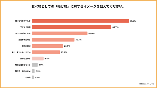 一方で、揚げ物自体への好意度は高く、「揚げたてのおいしさ」や「サクサク食感」に魅力を感じる人が多く存在します。