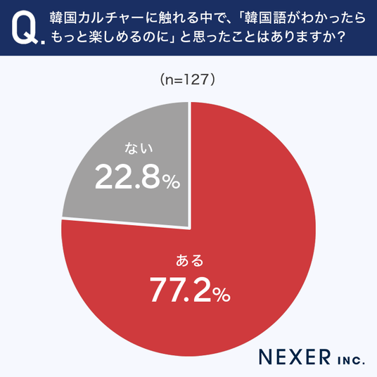 ■77.2%が「韓国語がわかったらもっと楽しめるのに」と思ったことが「ある」と回答