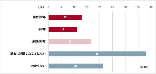 Q. 総合診療医として年間何例くらい希少疾患を診断(診断プロセスに関与したケースを含む)しますか。