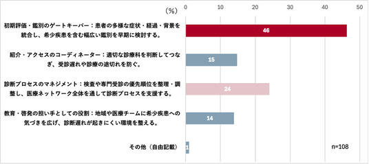 Q. 希少疾患の診断遅れを減らすために、総合診療医の最も重要だと思う役割を1つ選んでください。