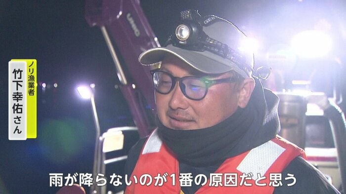 今シーズン前半は色落ちもなく順調だった有明海の養殖ノリ。しかし後半は出品枚数の4分の1が色落ち。雨が降らず晴天続きで植物プランクトンが活発化し赤潮も発生。ノリに必要な海の栄養塩の不足が原因だという。