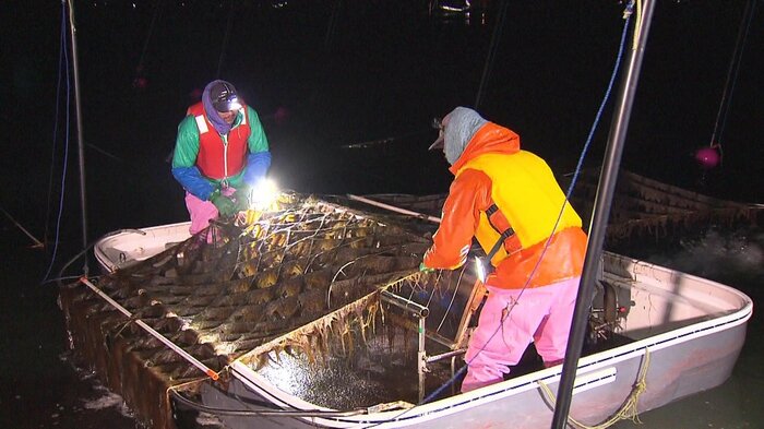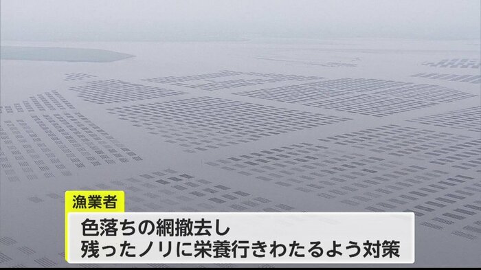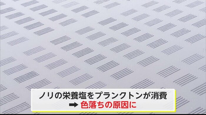 漁業者は色落ちの網を撤去し、残ったノリに栄養が行きわたるようにするなどの対策も行っているという。
