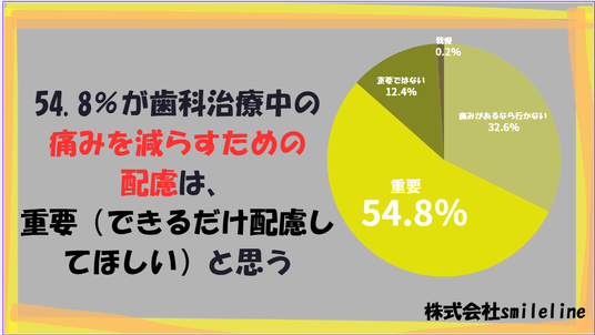 ■54.8%が歯科治療中の痛みを減らすための配慮は、「重要」と回答