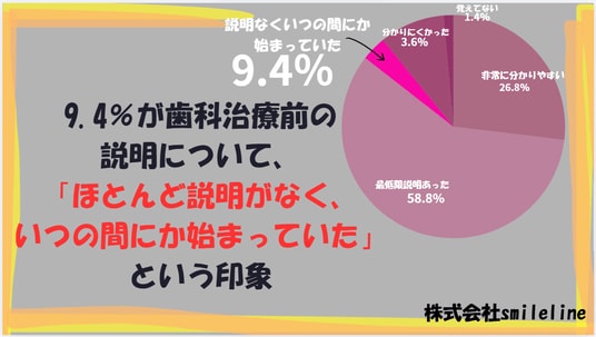 ■9.4%が、治療前の説明に「ほとんど説明がなく、いつの間にか始まっていた」印象と回答。