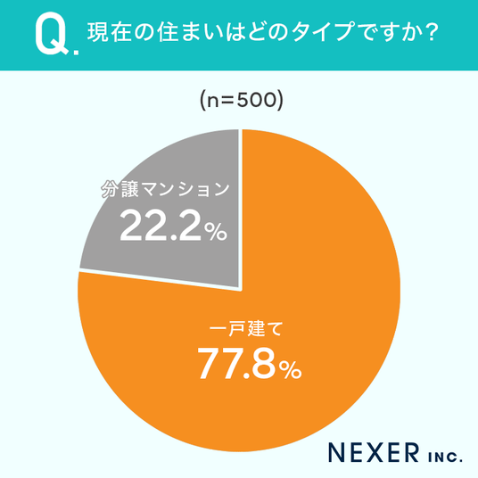 ■77.8%が「一戸建て」に居住。住まいのタイプ別の割合が明らかに
