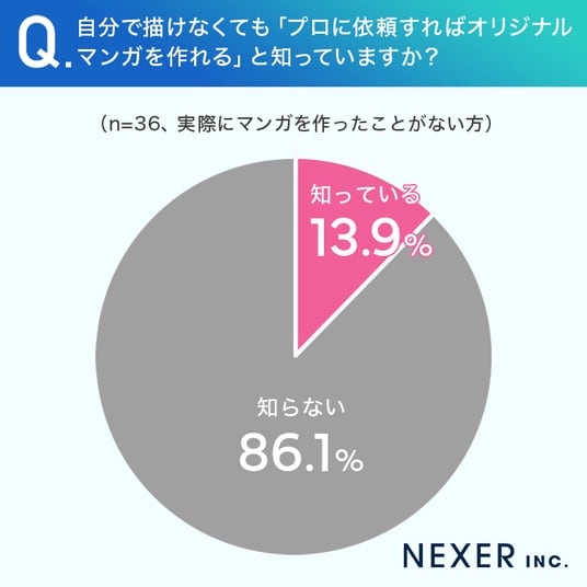 ■86.1%が「プロに依頼すればオリジナルマンガを作れる」ことを「知らない」と回答