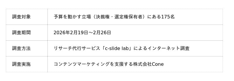 株式会社Cone(本社:大阪府大阪市、代表取締役:佐藤 立樹)は、企業において予算の決裁権・選定権を持つ担当者を対象に、「予算消化における施策満足度」に関する調査を実施しました。