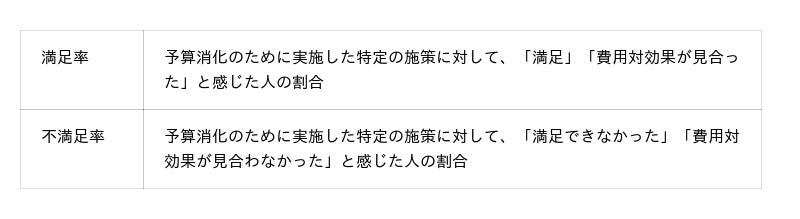 年度末の予算消化では、「満足度が高かった施策」を参考にするケースが多い一方で、実際の意思決定では“どれだけ失敗しにくいか”も重要な判断軸になります。満足している人が多くても、不満を感じた人の割合が高ければ、再現性のある投資とは言い切れません。