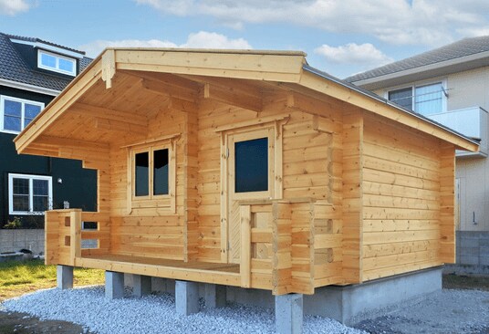 日本でのミニログの売り上げ棟数NO.1を誇りどっしり、がっしりで、圧倒的なこだわりのログハウスが高品質で低価格なのが自慢です。(横浜港、神戸港の倉庫より期日指定で直送)