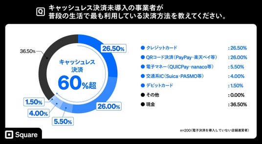 Square株式会社(所在地:東京都港区、日本事業責任者:スティーブン・アダムス、以下 Square)は、全国の店 舗運営者の約400人(20~79歳)を対象に、「キャッシュレス決済に関する調査」を実施しました。本調査では、 事業者のキャッシュレス決済の導入状況や利用意向に加え、消費者ニーズと店舗運営の実態との間にある ギャップについて分析しています。
