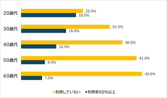 20代は上の世代より積極活用、利用率50%以上が19.5%