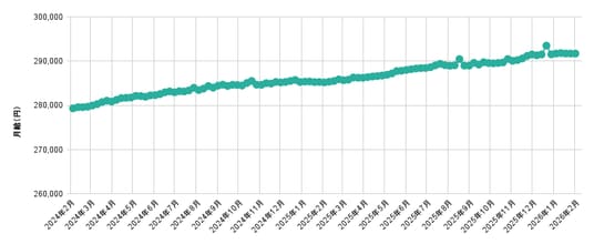 ■2月度の全国正社員平均月給は、291,698円(前月比-6円、前年同月比+6,515円)で前月から0.002%減少、前年同月から2.28%増加した。【図1】