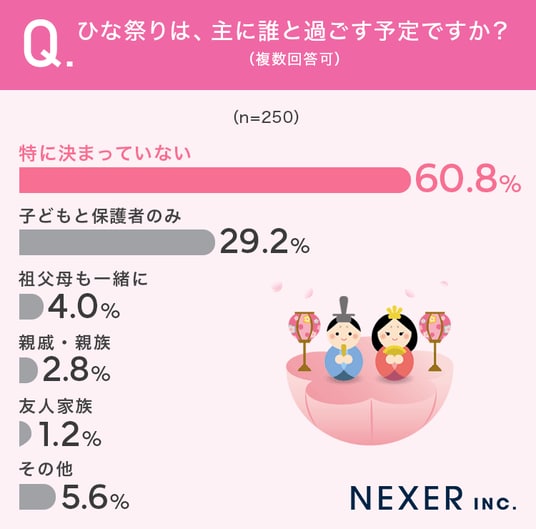 続いて、ひな祭りを主に誰と過ごす予定かを聞いてみました。