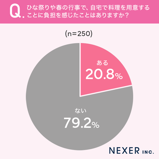 続いて、ひな祭りや春の行事で、自宅で料理を用意するときに負担を感じたことがあるかを聞いてみました。
