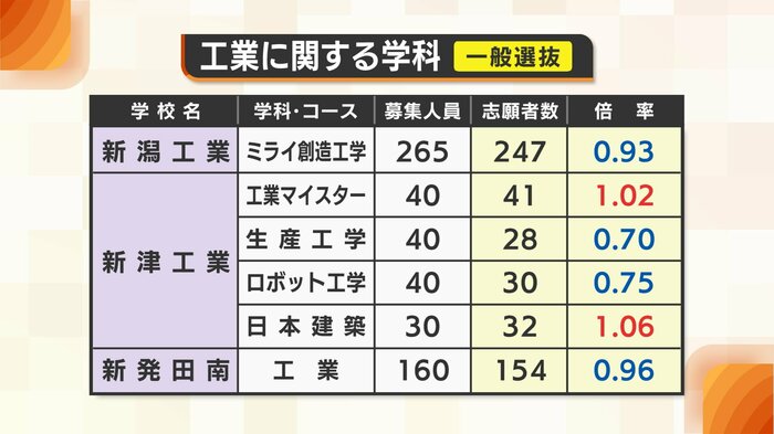 新潟の理数は1.95倍と最も高い倍率に。長岡の理数は1.03倍、高田の理数は1.07倍となっている。